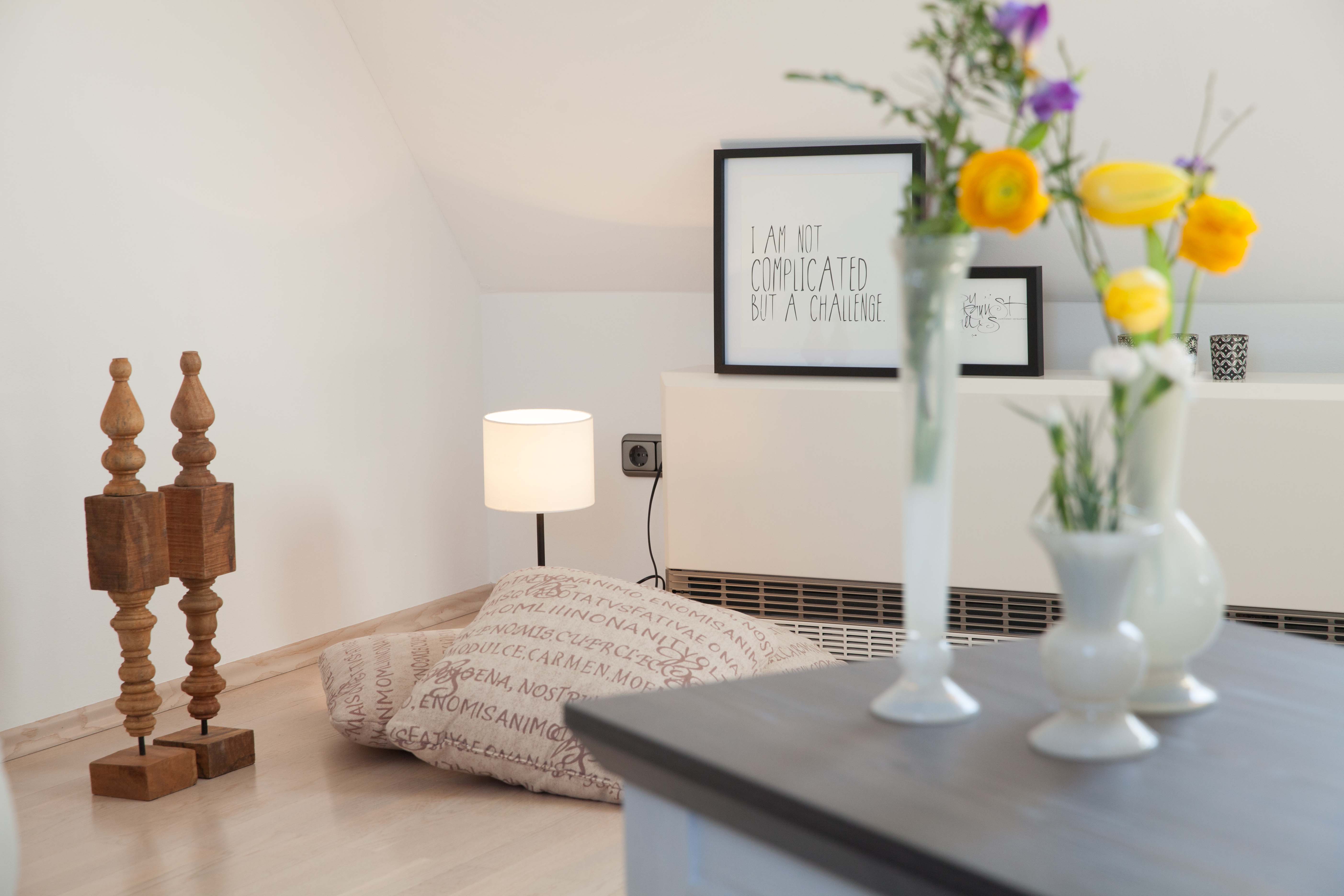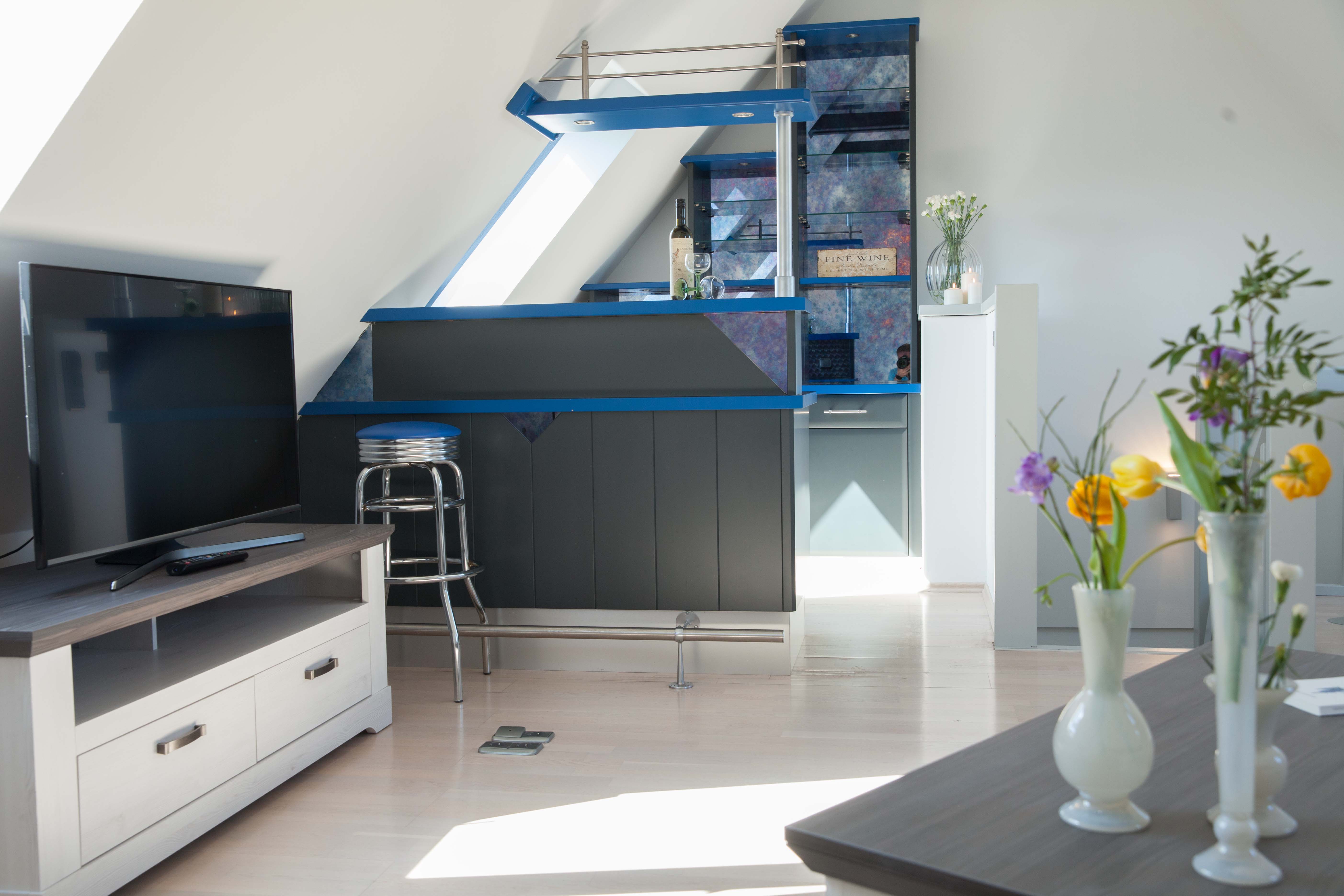 Dieses moderne, große 3-Zimmer Gallerie Apartment verteilt sich auf 2 Etagen und ist ideal für 1-3 Personen für längere Aufenthalte ausgestattet. Es verfügt über ein großes Wohnzimmer mit offener moderner Küche mit einen Esstisch, Ceran-Herd, Ofen und eine Geschirrspülmaschine. In der Schlafzimmer befinden sich ein King-Size-Doppelbett (1,60m breit) und einen Einbaukleiderschrank. In der obere Etage befindet sich die Galliere mit einer modernen, großen Bar, einem Flachbild-Fernseher und sehr gemütlichen Couch. Das moderne Badezimmer verfügt über eine Dusche, Handbrause, Waschmaschine.