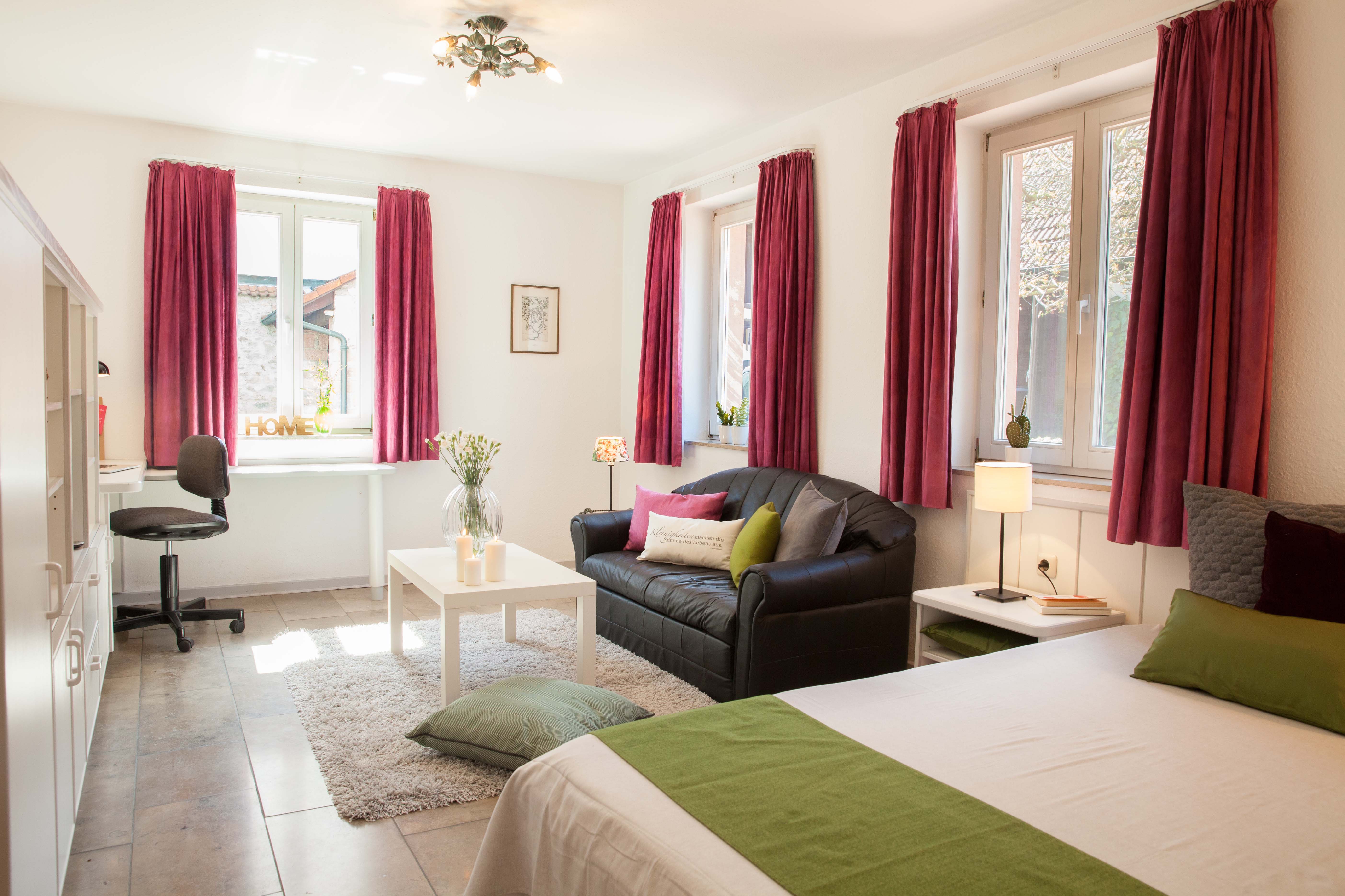 Dieses gemütliche, große Apartment ist ideal für 1 Person und vorwiegend an Wochenendheimfahrer. Die hochwertig ausgestattete Wohnung verfügt über eine Couch, einen Couchtisch und einen Einbauschrank mit Fernseher. Die Küche verfügt über eine Einbauküche mit Kühlschrank, Mikrowelle und Ceran-Herd. Das Badezimmer verfügt über eine Dusche mit Handbrause. Die Wohnung wird regelmäßig gereinigt, dieser Service ist inklusive.Besonderheiten